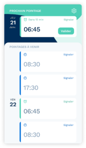 Lorsque votre pointage est bien validé, vous ne le verrez plus apparaitre dans « Prochain pointage ». Il s’agira du prochain pointage à valider.